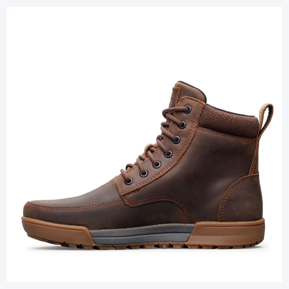 Denna helt vattentäta känga hämtar inspiration från den ursprungliga Boulder Boot, men kombinerar nu den robusta yttersulan på Outlander för att erbjuda ett säkrare grepp.