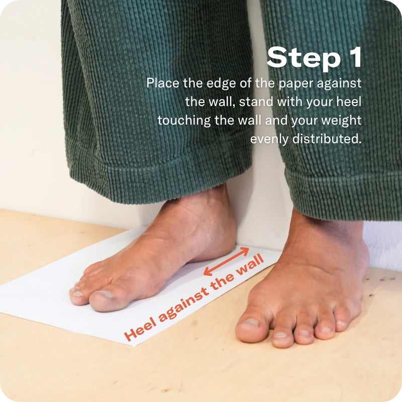 Placera ett papper på ett hårt golv bredvid väggen och trampa på det. Se till att hälen nuddar väggen bakom dig lätt.