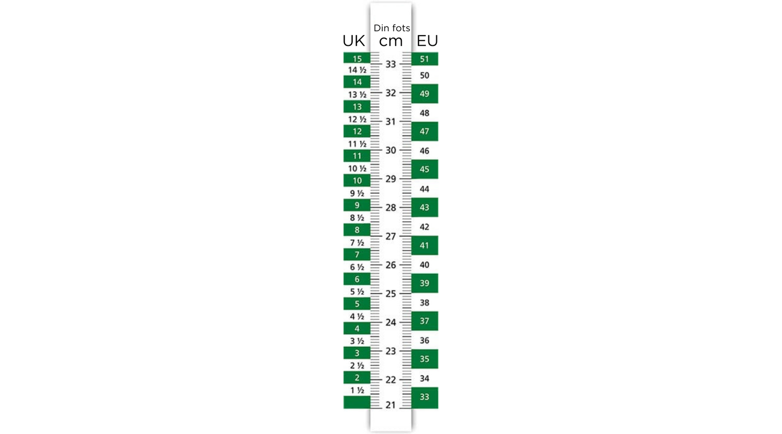 Mät längden på ritningen från den största tio till hälen. Jämför vilken fot som är något större, eftersom den större foten är avgörande för rätt skostorlek. Jämför sedan den uppmätta längden med den intilliggande tabellen.