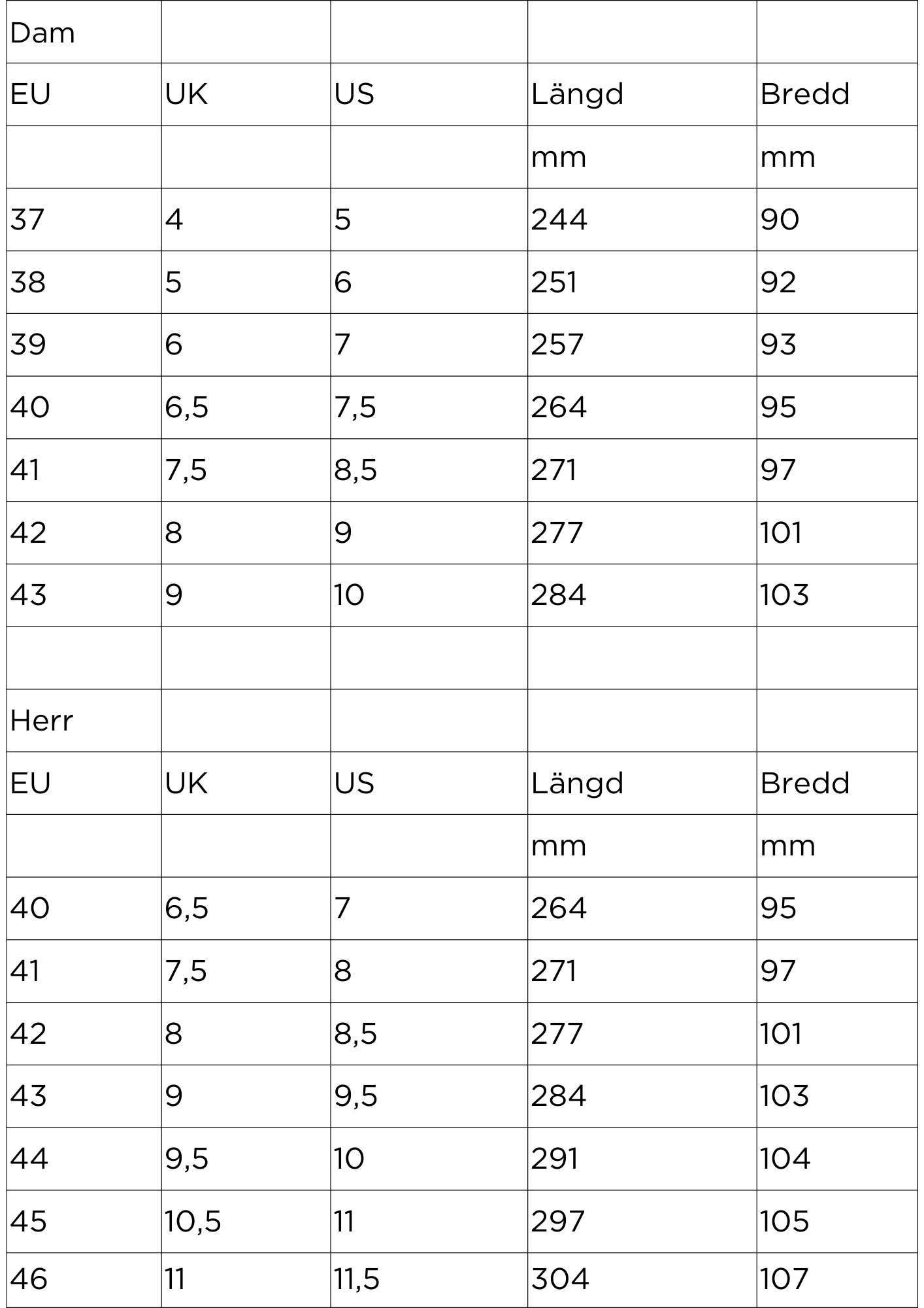 Om du är osäker på din skostorlek kan du använda våra mått för att hitta rätt storlek här. Observera att du alltid bör lägga till 10-12 mm utrymme när du mäter din fot. Blusun läster passar foten perfekt i både längd och bredd.